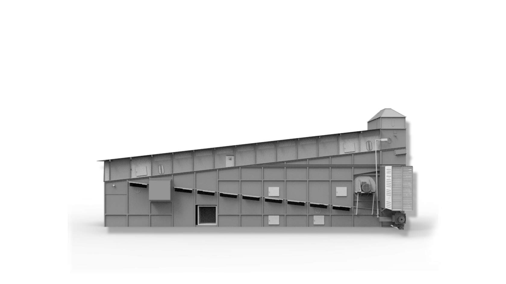 Зерносушилка конвейерного типа оборудована двумя ложами, по которым перемещается зерно. При этом зерновой мусор и пыль выдуваются, благодаря чему можно сушить зерно любой степени влажности и загрязненности. Эта модель отлично подойдет для небольших хозяйств